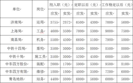 表2:部分轨道交通企业就业毕业生薪酬统计一览表