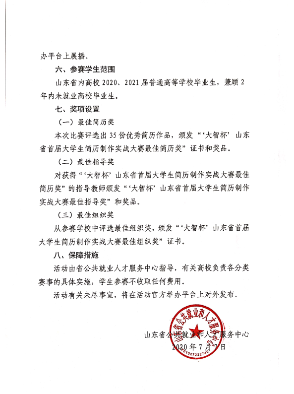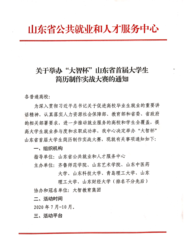 关于举办“大智杯”山东省首届大学生简历制作实战大赛的通知