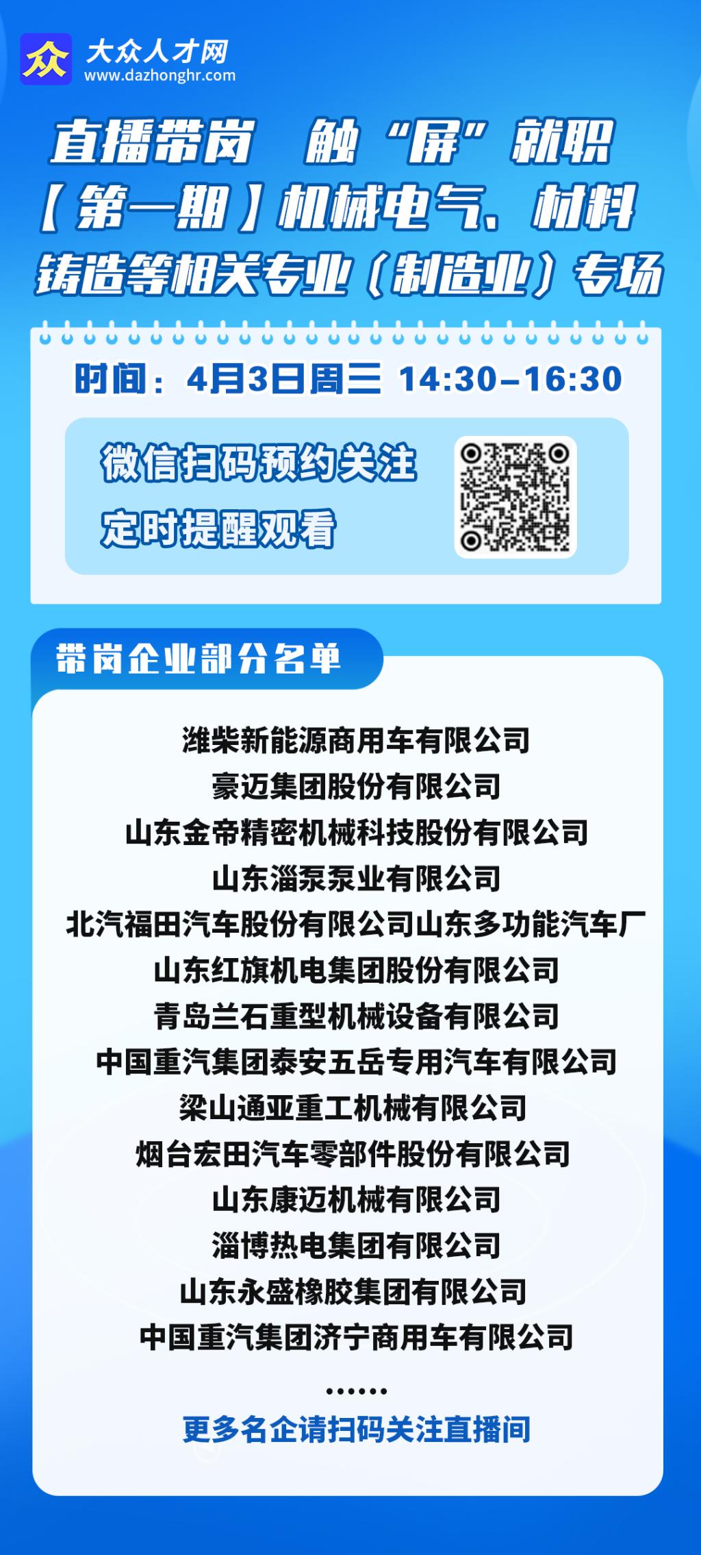 直播带岗 触“屏”就职【第一期】机械电气、材料铸造等相关专业(制造业)专场