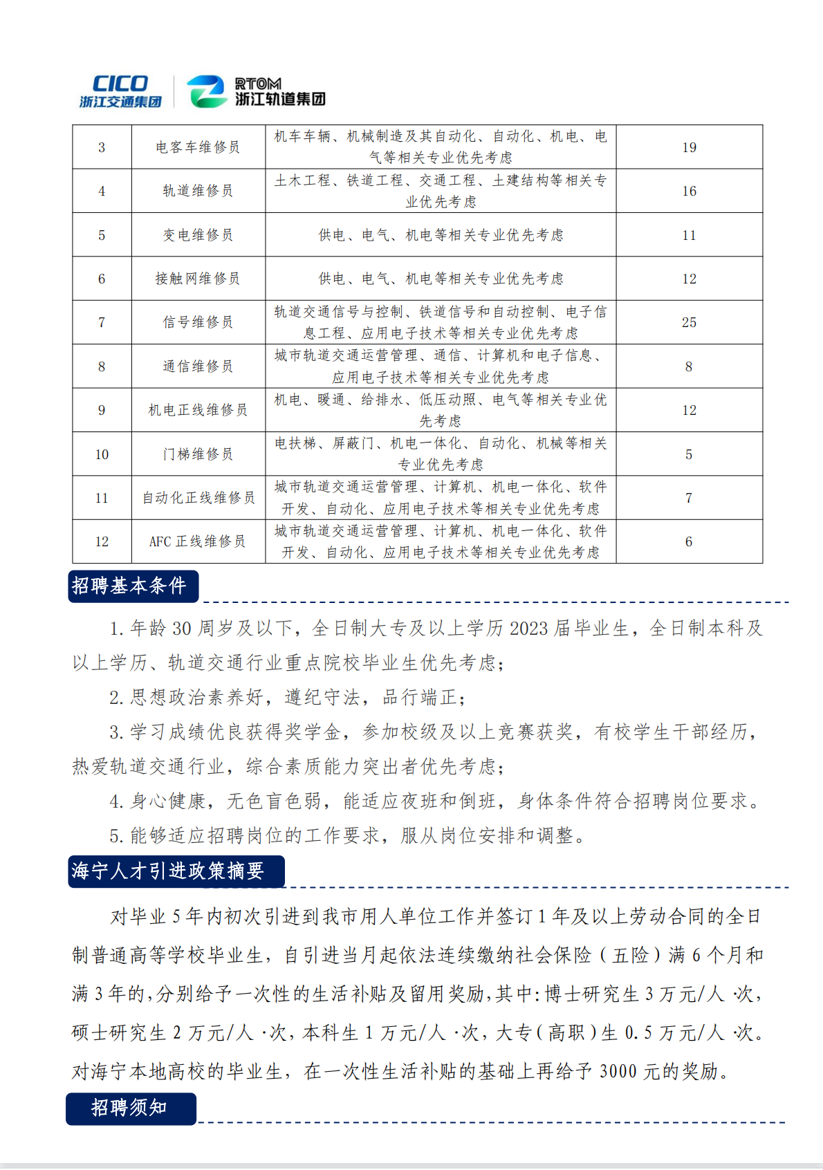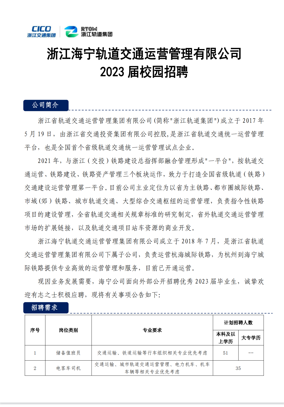 浙江海宁轨道交通运营管理有限公司2023届校园招聘