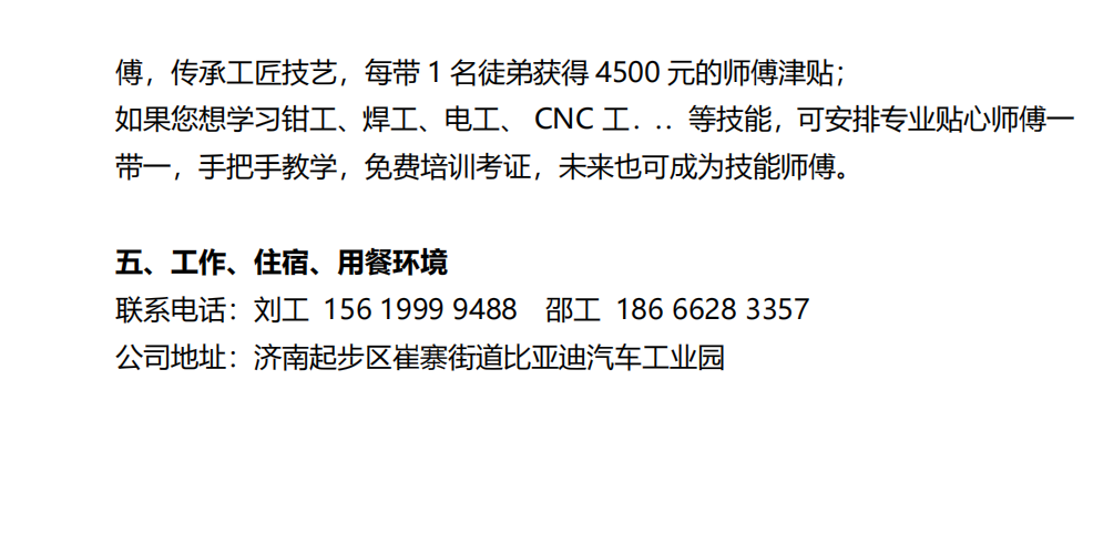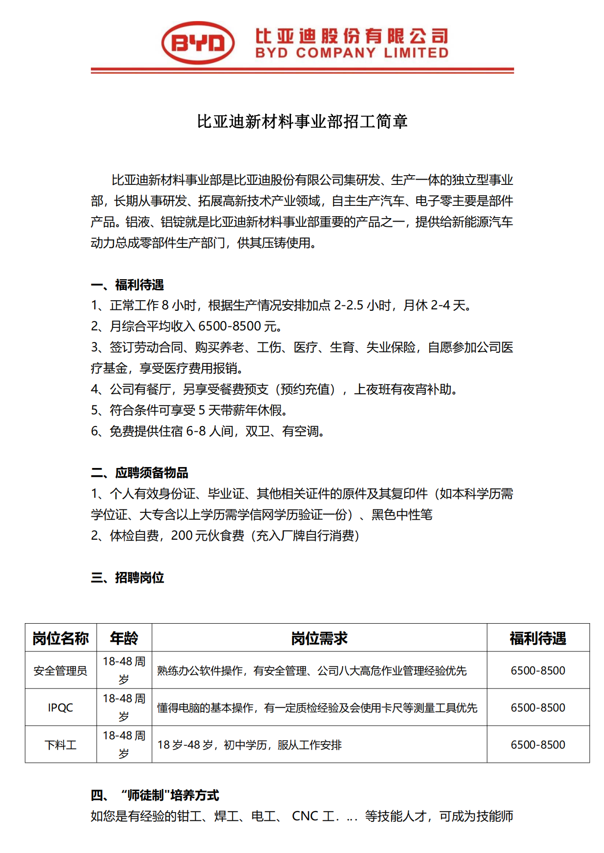 比亚迪公司关于后勤处济南地区多个岗位招聘的公告