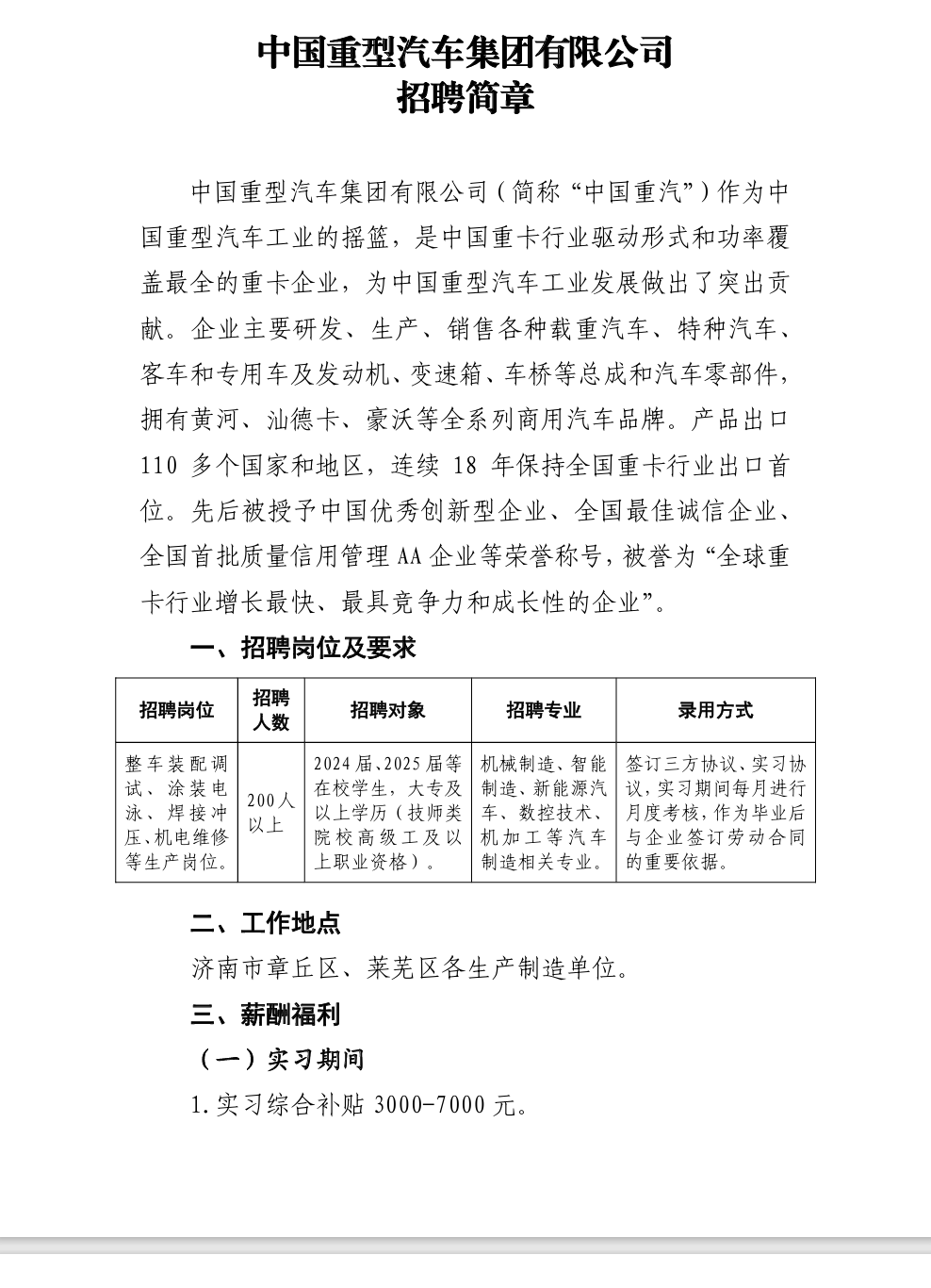 中国重型汽车集团有限公司招聘简章