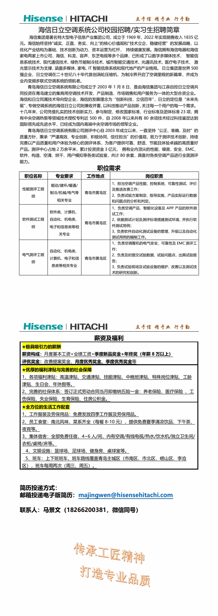 海信日立空调系统公司校园招聘及实习生招聘简章