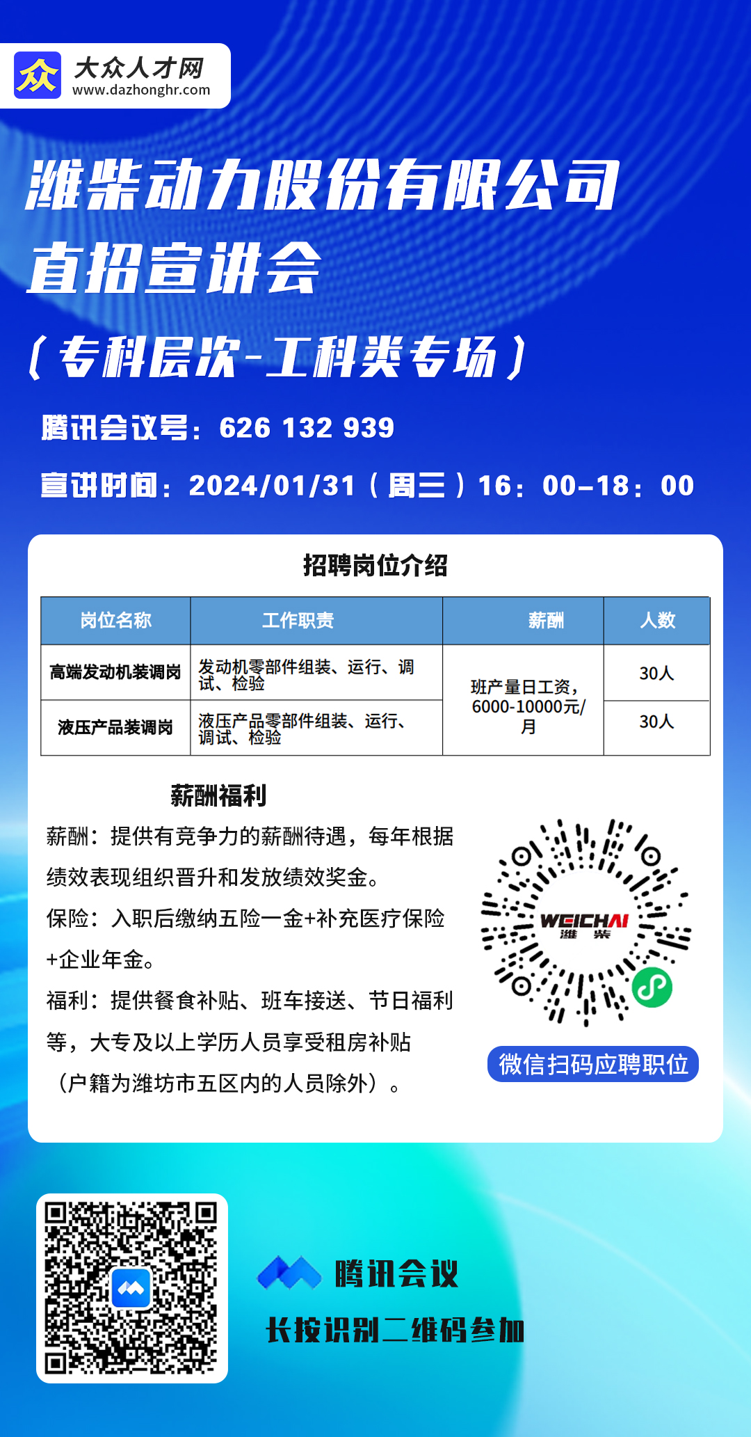 【潍柴动力股份有限公司】于今天下午4点做线上宣讲会,公司集中直招。