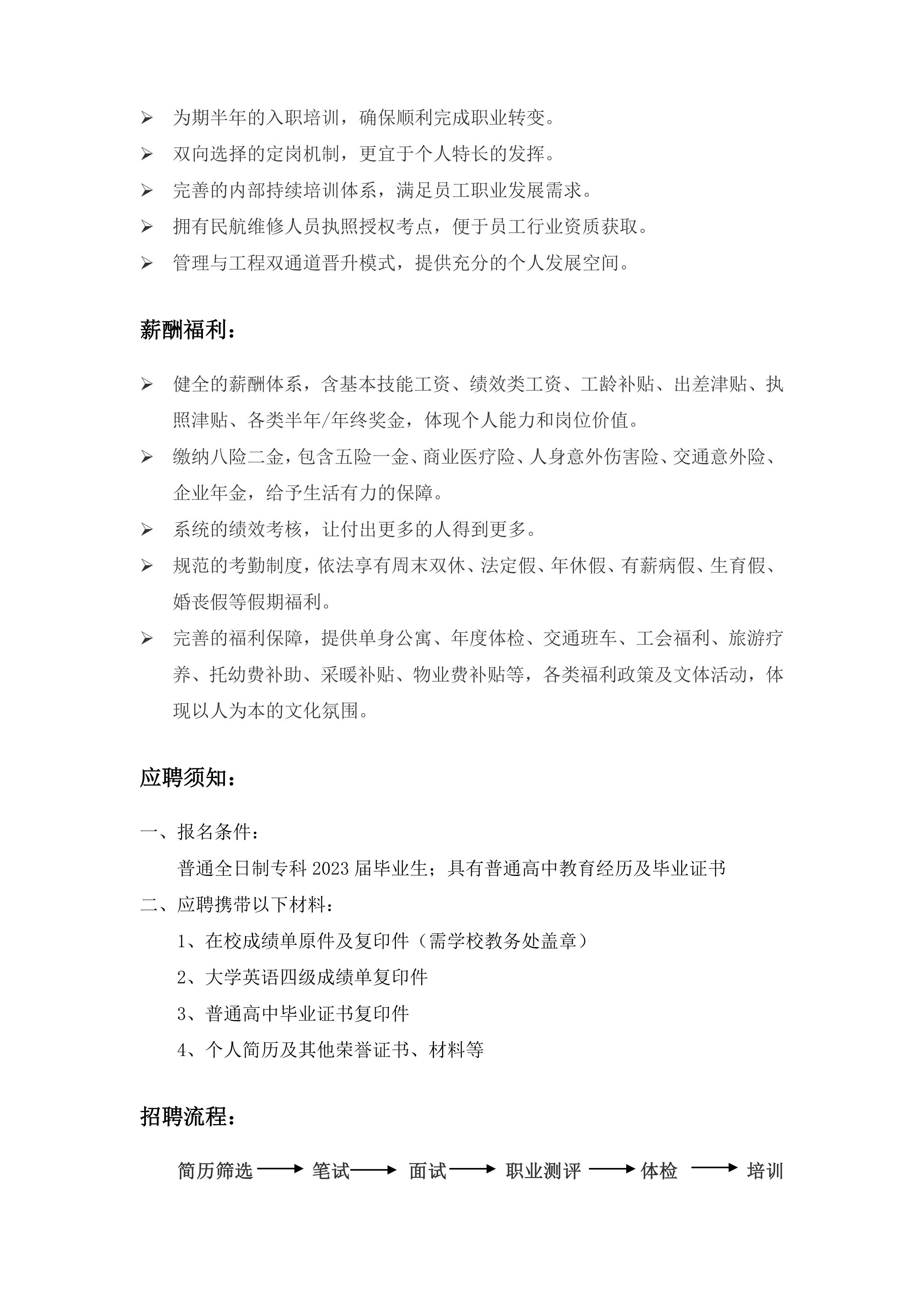 山东太古飞机工程有限公司招聘简章2023