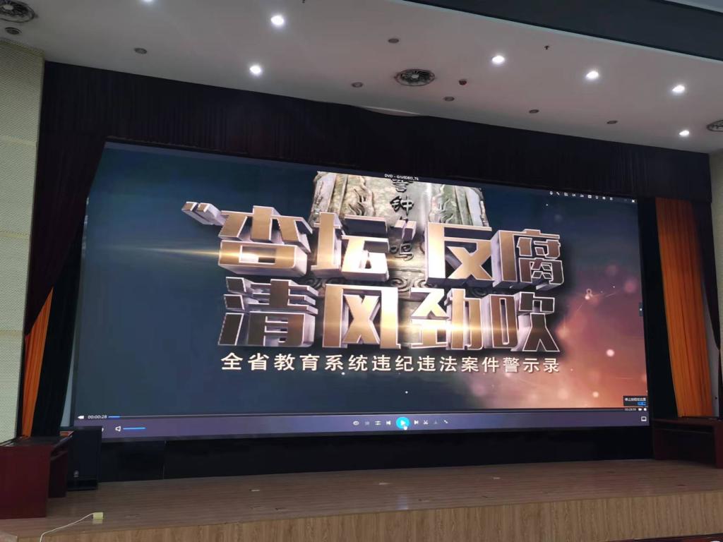为增强我校党员领导干部法纪意识,筑牢拒腐防变思想堤坝,4月29日下午,我校在西报告厅组织在校党员干部观看了由省纪委监委机关、中共山东省委宣传部、中共山东省委教育工委联合制作的全省教育系统违纪违法案件警示录《“杏坛”反腐 清风劲吹》警示片。