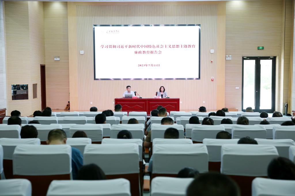 为深入推动学习贯彻习近平新时代中国特色社会主义思想主题教育走深走实,认真贯彻落实全面从严治党决策部署,进一步推进党风廉政建设,7月11日,我校举行廉政教育报告会。会议邀请鲁东大学纪委副书记逯鹏作报告。党委书记赵凤文主持报告会。