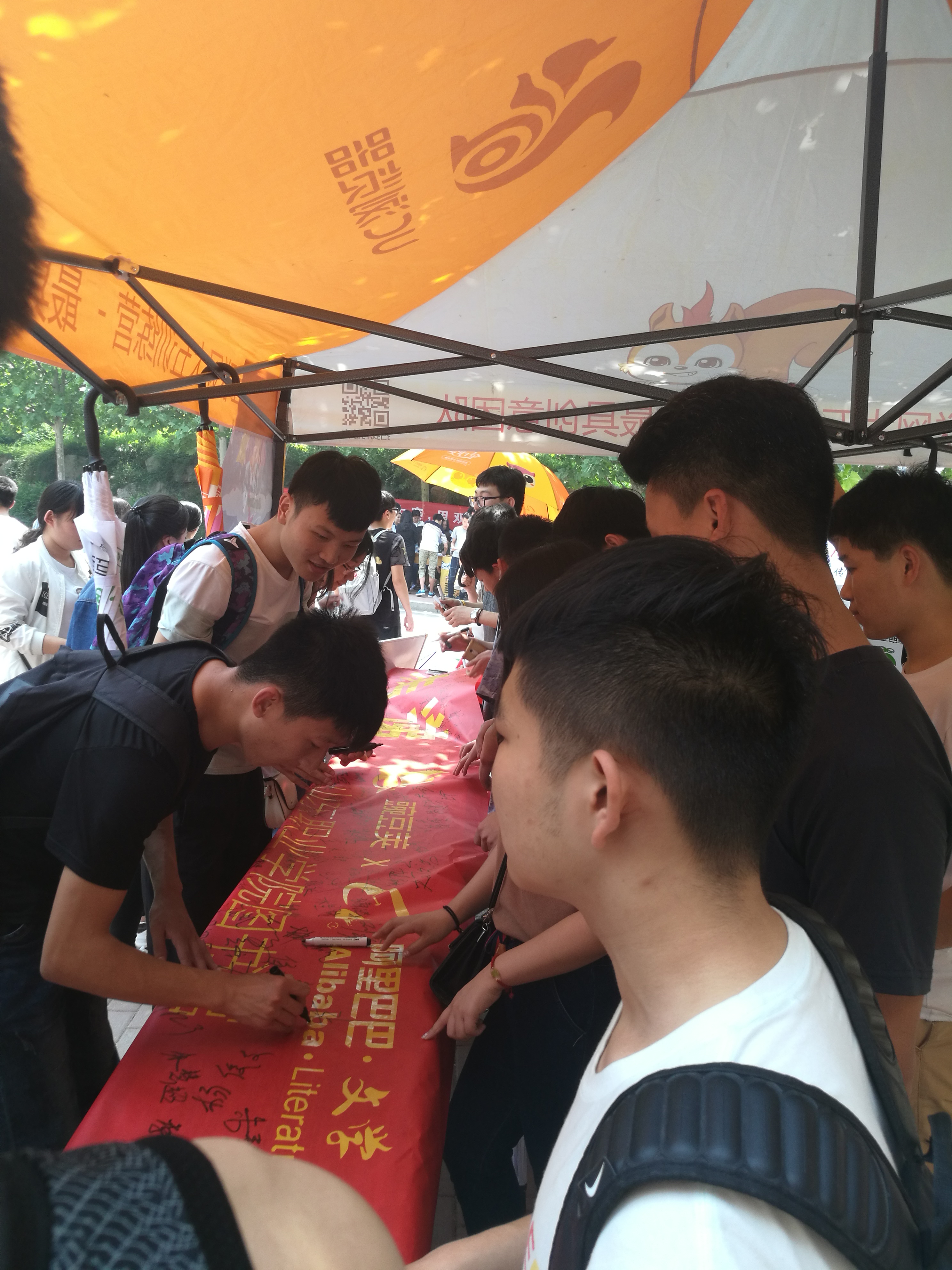 为方便广大师生雨雪天气出行,弘扬诚信精神,5月10日中午,Beplay体育官方网站图书馆联合UC浏览器于餐厅南门举办了“图书馆爱心伞诚信签名”活动。
