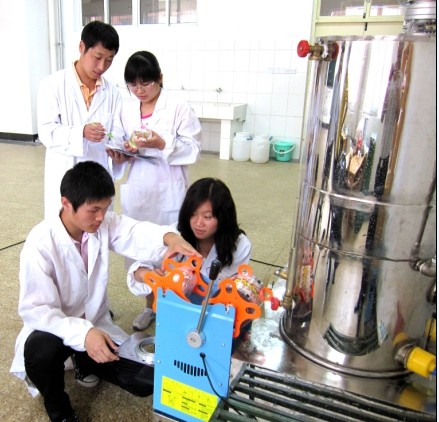 学生实践——学生们在乳制品实训室生产自行设计的新型乳品饮料