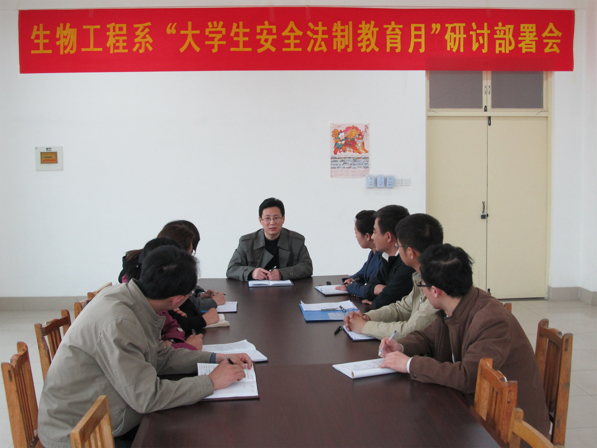 与会老师们认真听取了工作安排,并讨论研究了安全工作各方面的具体事宜,表示将在下一步的工作中按照《生物工程系学生安全法制教育月活动实施细则》的要求,把工作做到实处,确保平安校园建设工作在我系取得好的成绩。