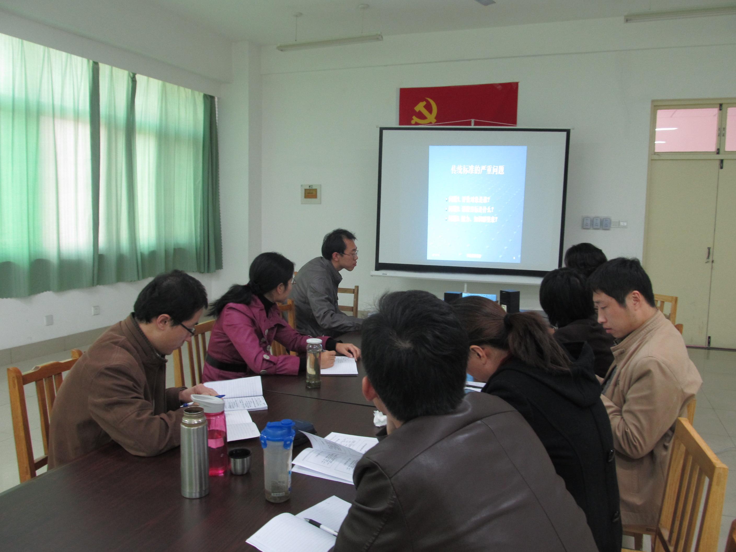 10月27日下午,生物工程系副主任史晓华组织全体专任教师于6407开展了关于戴士弘教授讲座的学习活动,并传达了学院关于项目课程改革的精神。大家细心聆听了戴教授的《高职课程的能力本位——项目化改造》专题讲座,对职教的基本理念、课程的单元教学设计、课程的整体教学设计、国家精品课程评审指标解析四个方面就课程建设进行了全面、深入、系统的学习。老师们认真学习,仔细记录,并就自己的课程对课程的单元设计和整体设计思路展开热烈讨论,对课程改革和建设充满了期待和信心。