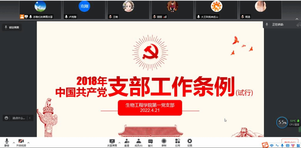 为确保疫情防控居家办公期间党员组织生活正常开展,生物工程学院党总支积极引导,通过召开腾讯线上会议的方式,认真落实“三会一课”“主题党日”等党内组织生活规定动作。