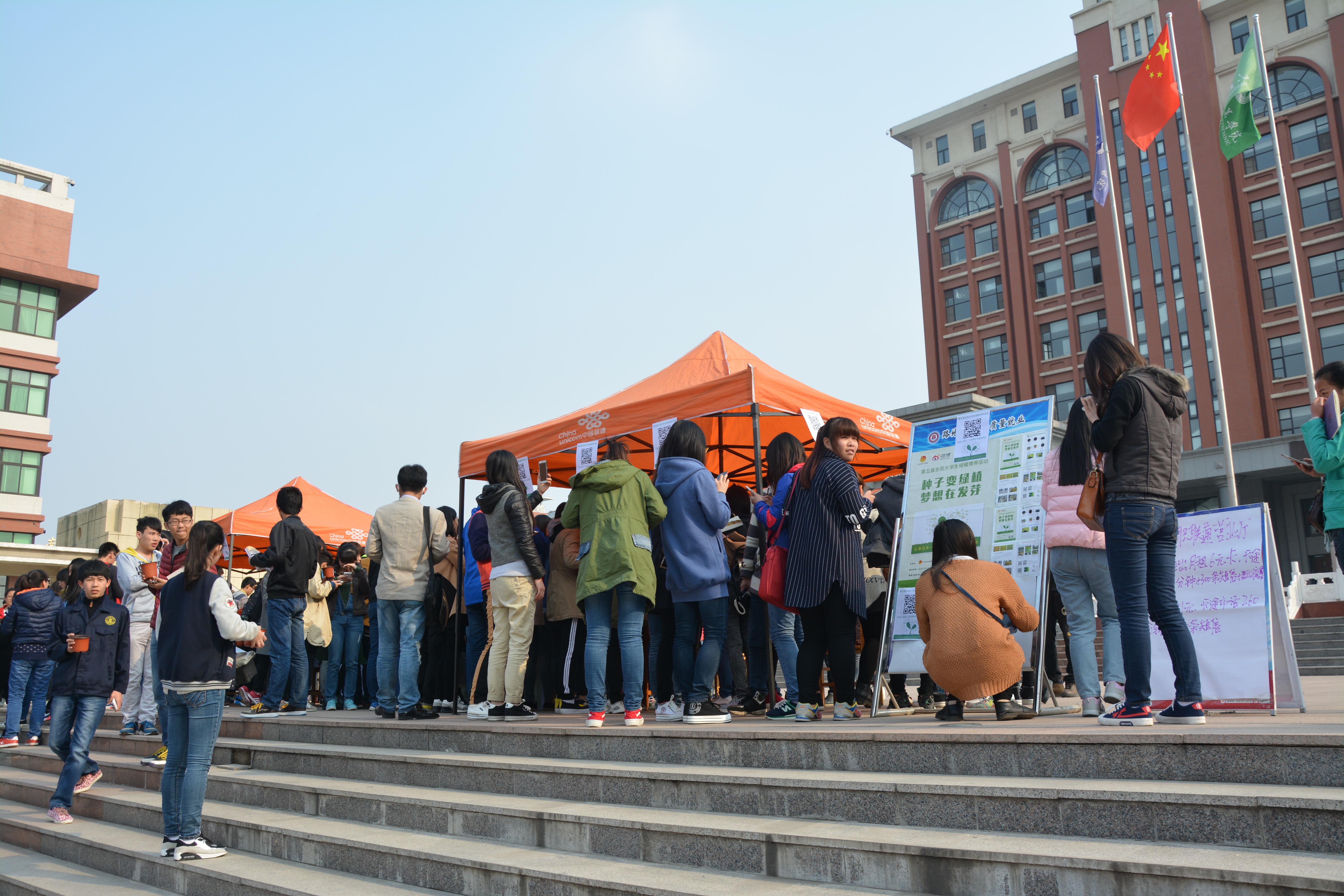为传递环保理念,鼓励大学生亲身参与绿色植物种植行动,积极唤醒同学们的环保意识,4月9日,院学生会在喷泉广场举办了第五届微博校园绿植领养活动。