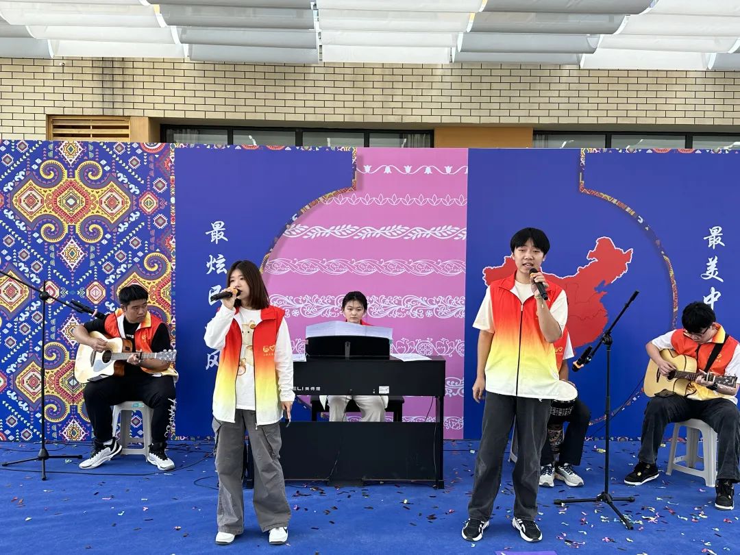 活动现场,身着民族服饰的孩子们朝气蓬勃,用稚嫩的嗓音表达出对祖国的无限热爱。南山书院繁星乐队演唱《国家》《歌唱祖国》等歌曲,礼仪之邦社团表演民族舞《中华之美》。幼儿园老师们表演舞蹈《美丽中国》,东汇景苑社区的老人们表演太极扇《红太阳》。这些精彩纷呈的节目,洋溢着大家对祖国的热爱,同时也为祖国的75岁生日送上了美好的祝福。