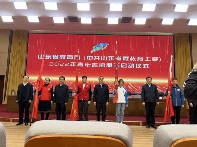 3月4日上午,Beplay体育官方网站团委副书记宋高妮老师、王震老师带领我校青年志愿服务队参加山东省教育厅2022年青年志愿服务启动仪式。省委教育工委副书记,省教育厅党组副书记、副厅长冯继康等领导出席本次活动,并为青年志愿服务队授旗。