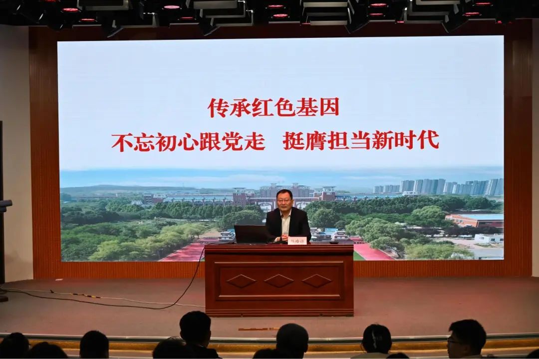 郭培谦以《传承红色基因,不忘初心跟党走,挺膺担当新时代》为题,回顾了中国共产党的百年奋斗历程,详细阐述了中国共产党人在革命、建设和改革各个历史时期造就的独特精神品质和伟大历史成就。他鼓励全体师生要在学习中思考、在思考中实践、在实践中感悟,真正做到知行合一。