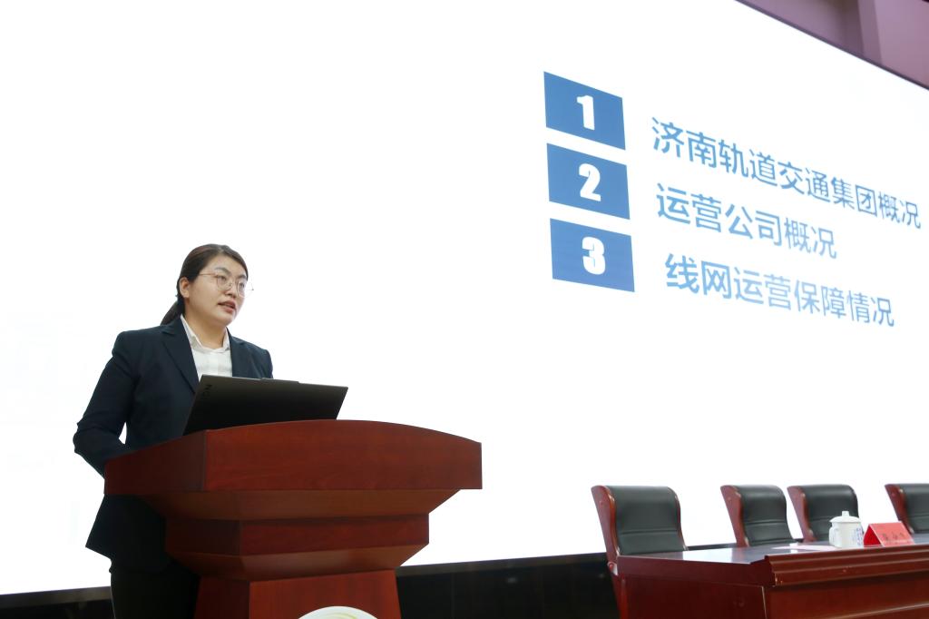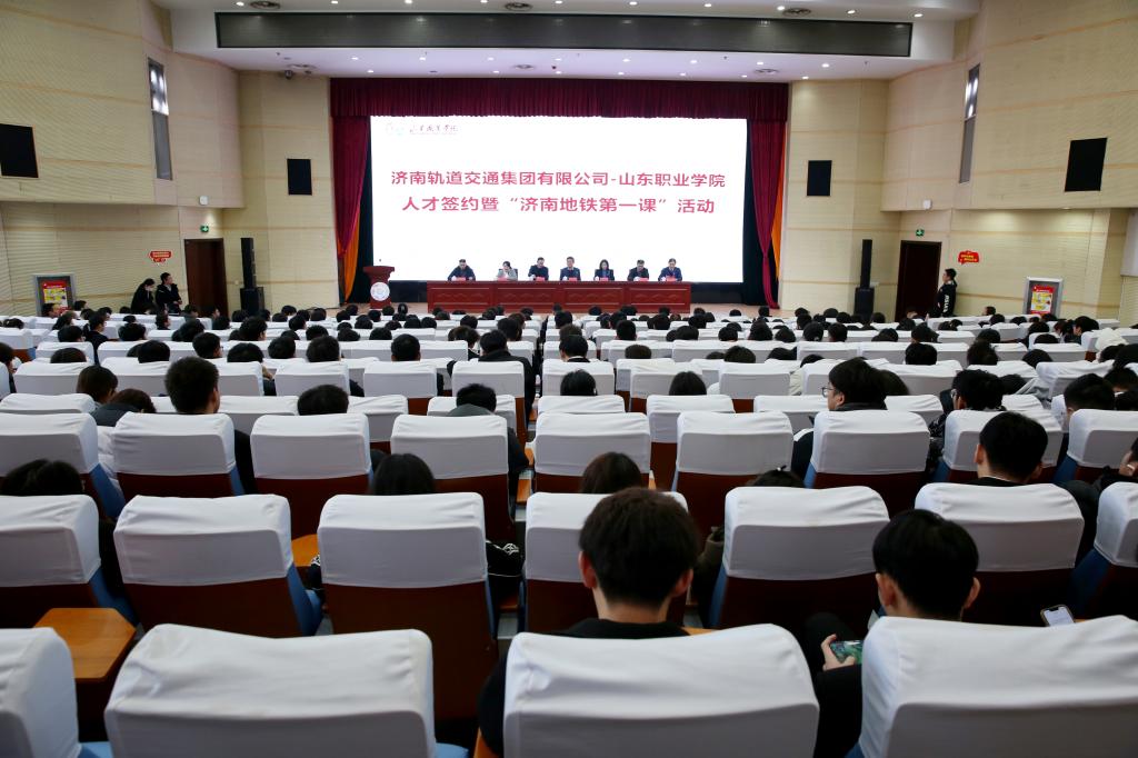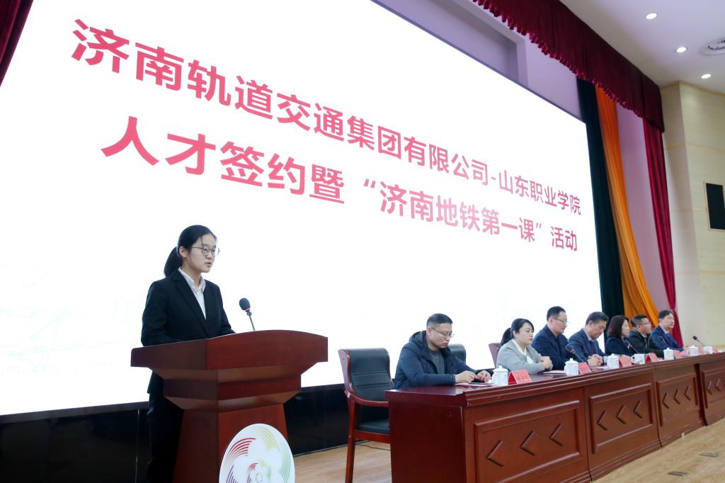 签约仪式后,举办了“济南地铁第一课”。运营公司办公室资深主管、高级内训师王岩芳介绍了济南地铁的建设、发展、运营、文化、服务等情况,车辆部王家盛、通号工务部陈笑添、机电部晁玉敬分享了自己从校园到工作岗位的成长经历和感悟。