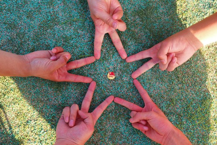 同学们在校园内不同地点拍下与团旗、团徽的创意合照,记录美好瞬间。他们脸上热情而坚毅的模样,展示出了青年朝气蓬勃和昂扬向上的精神风貌。