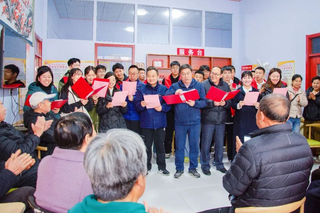 谈话结束后桐林书院党员与志愿者们在章丘区普集街道大院村党群活动中心党员活动室宣讲了红色文化并进行文艺汇演,并对大院村老党员们进行了慰问,不仅让老党员们感受到党的温暖,还拉近了我们与老党员们心与心的距离。