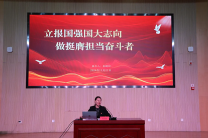 钮晓悦围绕大学生树立报国强国志向的重要性展开阐述,从个人、社会、国家三个维度进行了深入解读。她强调,作为新时代的大学生,要坚定理想信念,明确报国志向,通过提升综合素养来增强自己的报国能力。要勇于担当,积极践行报国行动,培养高尚品德,为实现中华民族的伟大复兴贡献自己的青春和力量。在讲授中,钮晓悦紧密结合时代要求和学生实际,引导学生树立正确的世界观、人生观和价值观,增强了大家的社会责任感和历史使命感。