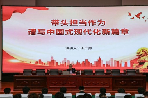 王广勇围绕“责任与担当”展开深刻阐释,从“何为担当作为”“为何强调担当作为”以及“新征程党员干部如何担当作为”三方面进行具体说明。他指出,生逢盛世当不负盛世,生逢其时当奋斗其时,新时代青年要坚定信仰,明确方向,要立足专业,服务大局。作为新时代大学生,要做到对党忠诚,勇于承担责任,在学习和生活中积极面对挑战,锤炼坚韧不拔的意志品质。