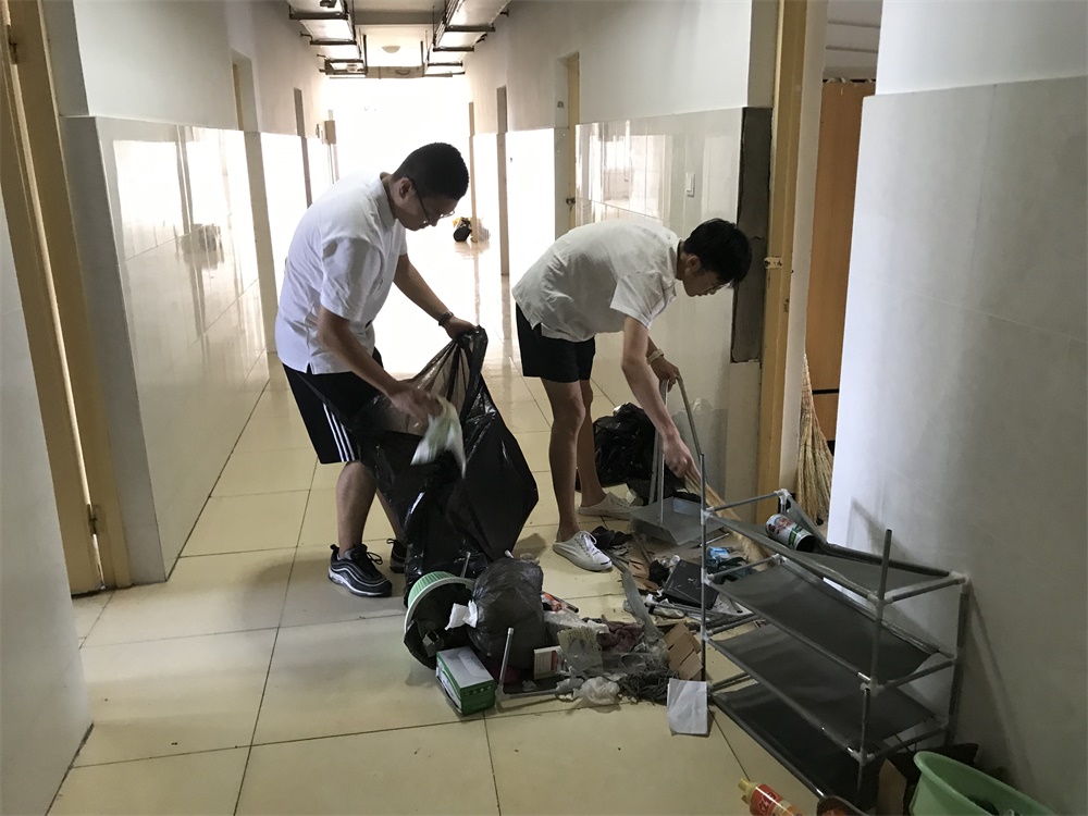 大家在4号公寓五楼大厅集合,由王行洲为此次活动做动员讲话。随后,积极分子们带着准备好的劳动工具进入大三学生宿舍进行卫生清扫。入党积极分子充分发挥服务同学,服务院系的精神,穿梭于各个宿舍之间,忙碌的身影成为宿舍楼里一道靓丽的风景线。经过一个多小时的清洁打扫,所有大三宿舍的卫生环境焕然一新。活动最后,大家齐聚3301会议室,总结并讨论本次活动的心得与体会,大家畅所欲言,纷纷表示作为入党积极分子就更要有服务意识和乐于奉献的精神,从思想和行动上不断提升,积极向党组织靠拢。