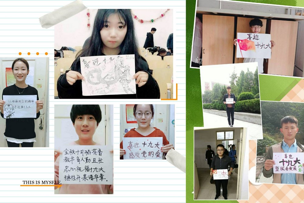 10月18日,中国共产党第十九次全国代表大会在京召开。值此,生物工程系开展“喜迎十九大 说出我们的爱”系列活动。同学们用彩笔在卡片上写下对祖国、对党的一句表白话,送上美好祝愿。“祝祖国:新的启程,繁荣昌盛”;“祖国是我最深的牵挂”;“祖国,你的样子我刚好喜欢”;“从来不需想起,因为不曾忘记”;“有国才有家,我很踏实”……一声声,一句句,说出了同学们对祖国的爱,凝聚成一句我爱你中国。
