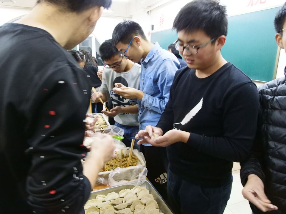 师生们围在一起,有的和面、有的烧水还有的调馅,忙的不亦乐乎。当一锅热腾腾的水饺出锅时,尽管它外观不算漂亮,但应该是世界上最美味的食物,因为这是大家共同努力的成果,是我们相亲相爱的见证。本次活动让在大家感受节日温暖、集体温馨、缓解思乡之情的同时,更真实的感受到了中国传统文化。过完冬至节,迎接新的一年到来。