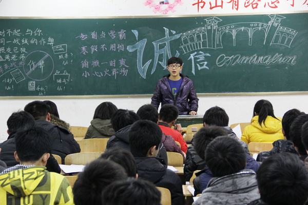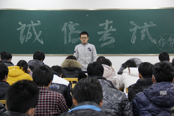 班会上,同学们分别针对诚信考试表明了自己的态度,机电1231班的班长彭华向同学们发出“杜绝作弊,诚信考试”的倡议,希望所有同学遵守考纪,公平参与竞争,以诚实守信的态度完成期末考试。
