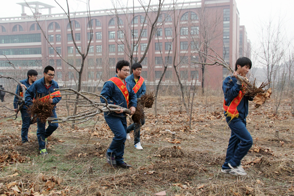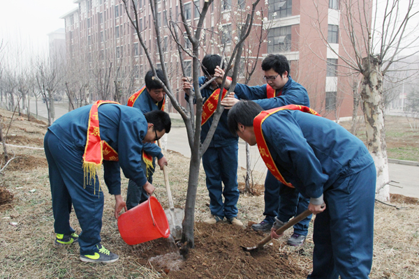 冬天的寒意还未褪尽,春天带着绿色的气息向我们走来。3月12日,又到了一年一度的植树节,机电装备系雷锋精神研究会成员组织开展了主题为“绿化环境、美化校园”的植树活动。 活动伊始,同学们有序的加入了校园植树的行列,大家分工明确,有的手持铁锹挖坑,有的准备水桶,有的则搬运新的树苗,在校园环卫工人的指导下,顺利的将一棵棵树苗植入坑内。在大家的共同努力下,一颗颗树苗整齐的出现在宿舍楼前。最后,环卫工人也向机电系的同学们表示衷心感谢,希望他们以后还能继续坚持,就像他们的口号那样“机电人,活雷锋”。