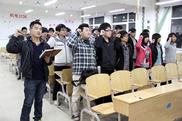 ,艰难困苦,玉汝于成;居安思危,戒奢以俭。班会最后,同学们自发组织宣誓活动,表示要互相监督,互相提醒,养成良好的节约意识,形成爱惜粮食的好习惯。