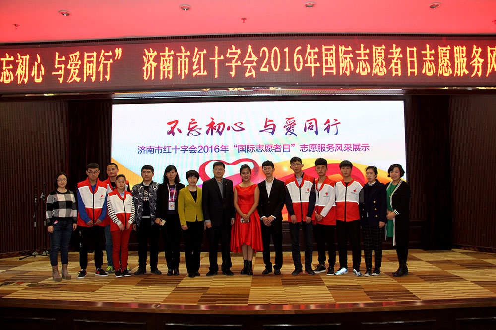 12月4日,我院铁道机车与机电装备系红十字志愿服务队参加了济南市红十字会举办的“不忘初心,与爱同行”2016年国际志愿者日志愿服务风采展示活动。市文明办、团市委等单位领导,部分社会公益爱心人士,全市22支红十字志愿服务队骨干队员、区县红十字会志愿者等200人出席本次活动。