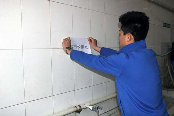 活动共分为节水动员会、张贴“请节约用水”的宣传标语、走访宿舍进行宣传等三个环节。在节水动员会中,一名学生干部说道,作为当代大学生,我们要倡导节约观念,养成节约用水的习惯,树立节水为荣、浪费可耻的荣辱观。在随后的活动中,宣传小组在宿舍各洗刷间张贴节约用水标语,并进入学生宿舍宣传,提醒同学们在日常的生活中要节约用水,并向同学们介绍了现在国家的用水现状以及很多地区的缺水情况。