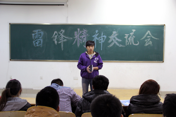 会上,同学们就乔安山同志所作的报告展开讨论,围绕着雷锋精神发表自己的感想。一位代表就雷锋生前所做的小事发表了自己的感想。他说,这些小事都是生活中平凡的事,而我们却做不到,我们应该站在雷锋的角度上去考虑问题,然后做出像雷锋一样的事情,希望大家行动起来,自觉传承雷锋精神,在日常生活中学习雷锋,做一个“活雷锋”。