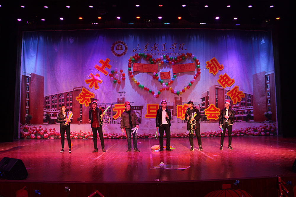 本次晚会以“激情元旦、放飞梦想”为主题,节目精彩纷呈。晚会以一曲动魄人心的《威风锣鼓》拉开了帷幕。舞蹈《丰收的葡萄园》以曼妙优雅、婉约优美的舞姿吸引了在场观众的眼球;一首《乌苏里船歌》唱出了赫哲族人欢快,甜美的幸福生活,赢得了全场的阵阵掌声;《街舞表演》激扬着青春的风采,让人仿佛走进了时代的动感地带,世界在观众的眼前舒展开来;极具创意的小品《一念天堂》以风趣幽默的动作、诙谐调侃的语言令在场观众捧腹,将全场火爆的气氛瞬间点燃。而之后的歌朗诵《青春赞歌》、礼仪《礼暖冬夜》更是将现场气氛推上了高潮,叫好声和掌声不绝于耳。表演期间的观众互动环节萝卜蹲、抢凳子等趣味小比赛令场上欢声一片。最后,晚会在两系学生干部一首合唱声中圆满落幕。