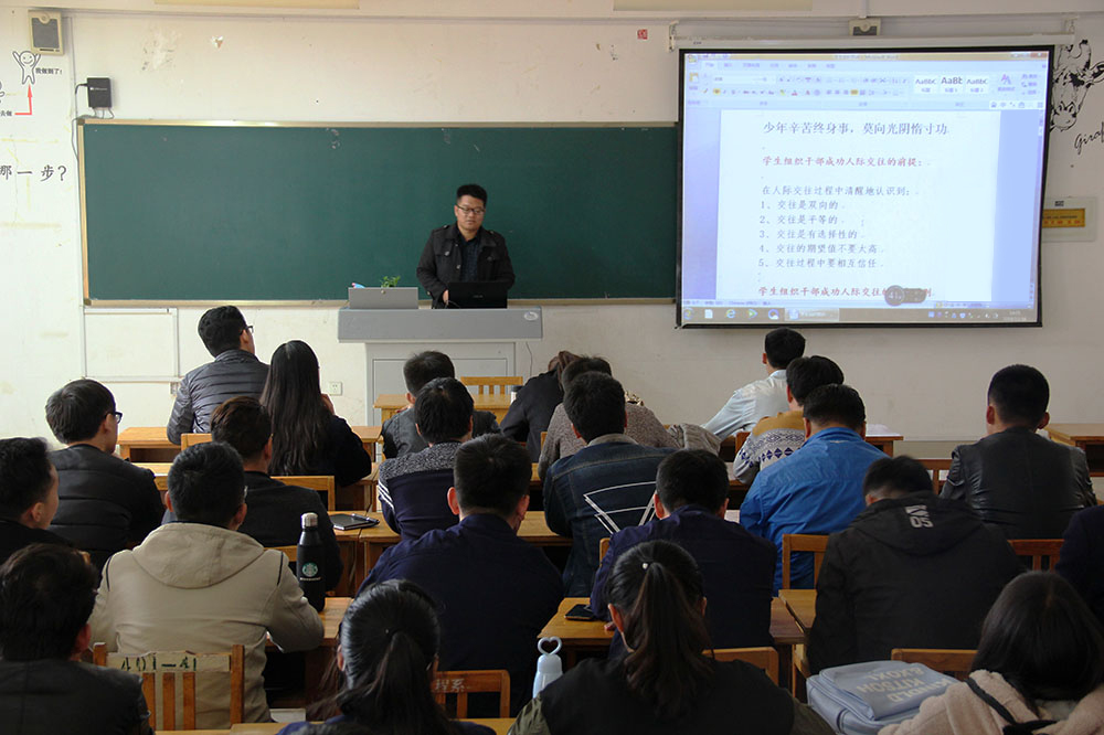 孙娜通过游戏互动,指出学生干部应具备良好的组织能力、沟通能力、协调能力和管理能力。她强调,作为学生干部要做到心中有数、身中有力、脑中有法,努力提升综合素质和道德修养,以高标准、严要求规范自己的一言一行,做到让老师放心,让同学信任。齐凤军结合学生宿舍管理工作实际情况,从宿舍卫生、宿舍安全两个方面提出了九项要求。他要求学生干部要严格遵守学院宿舍管理规定,模范带头,敢于担当,加强宿舍文化建设,营造和睦、团结的宿舍文化氛围。王帅围绕“如果成为一名合格的学生干部”主题,要求学生干部应该树立正确的世界观和人生观,求真务实,讲究原则,一视同仁。张坤围绕学生干部应具备的能力与素质,强调在学习与工作中,要学会统筹兼顾,同时还要加强政治理论学习,树立正确的政治观、大局观。马爱红针对学生日常规范对学生干部做出具体要求。