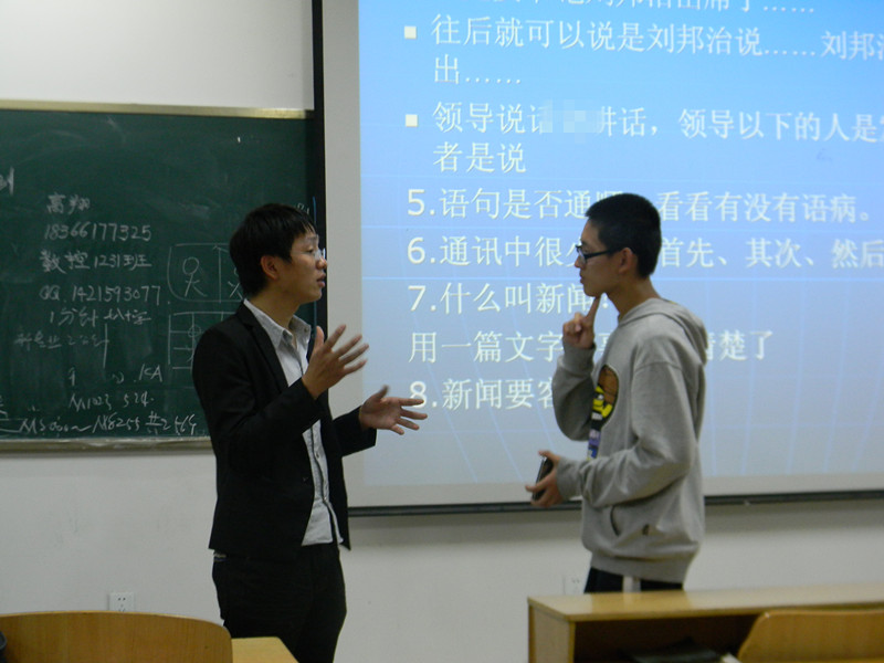 10月24日晚,机械工程系召开记者团、编辑部新成员业务培训会。记者团团长、编辑部部长谭荣超对新成员进行业务指导。