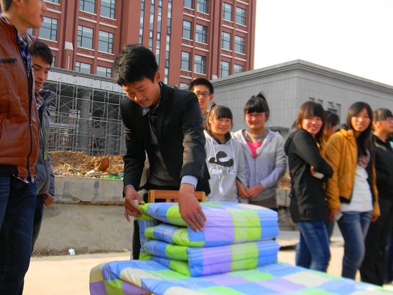 11月24日上午,机械工程系叠军被大赛在九号教学楼门前举行,2012级新生参加了本次比赛。