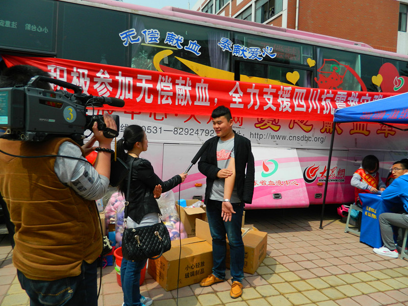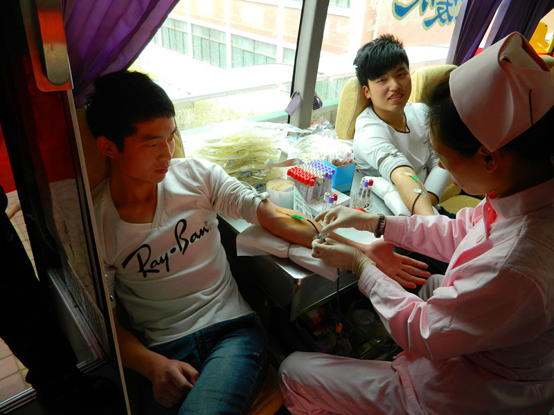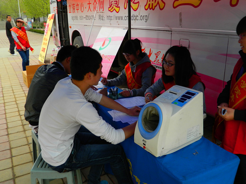 2013年4月20日8时2分四川雅安发生7.0级大地震,截止发稿已有192人死亡,23人失踪,11470人受伤。地震发生后,许多伤员被送往医院,而血液是拯救伤员生命的重要物质,至今仍无法人工制造,只能依靠人们用爱心提供。4月22日,院团委联合省血液中心共同组织无偿献血活动。机械工程系学生得知后,组成志愿者小组,经过老师的培训,参与到献血活动服务中。