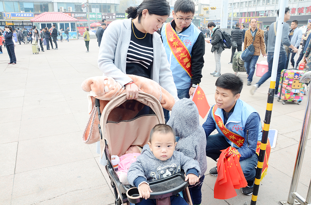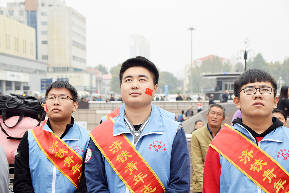 铁道供电与电气工程系青年志愿者车站做志愿观盛况为祖国加油点赞