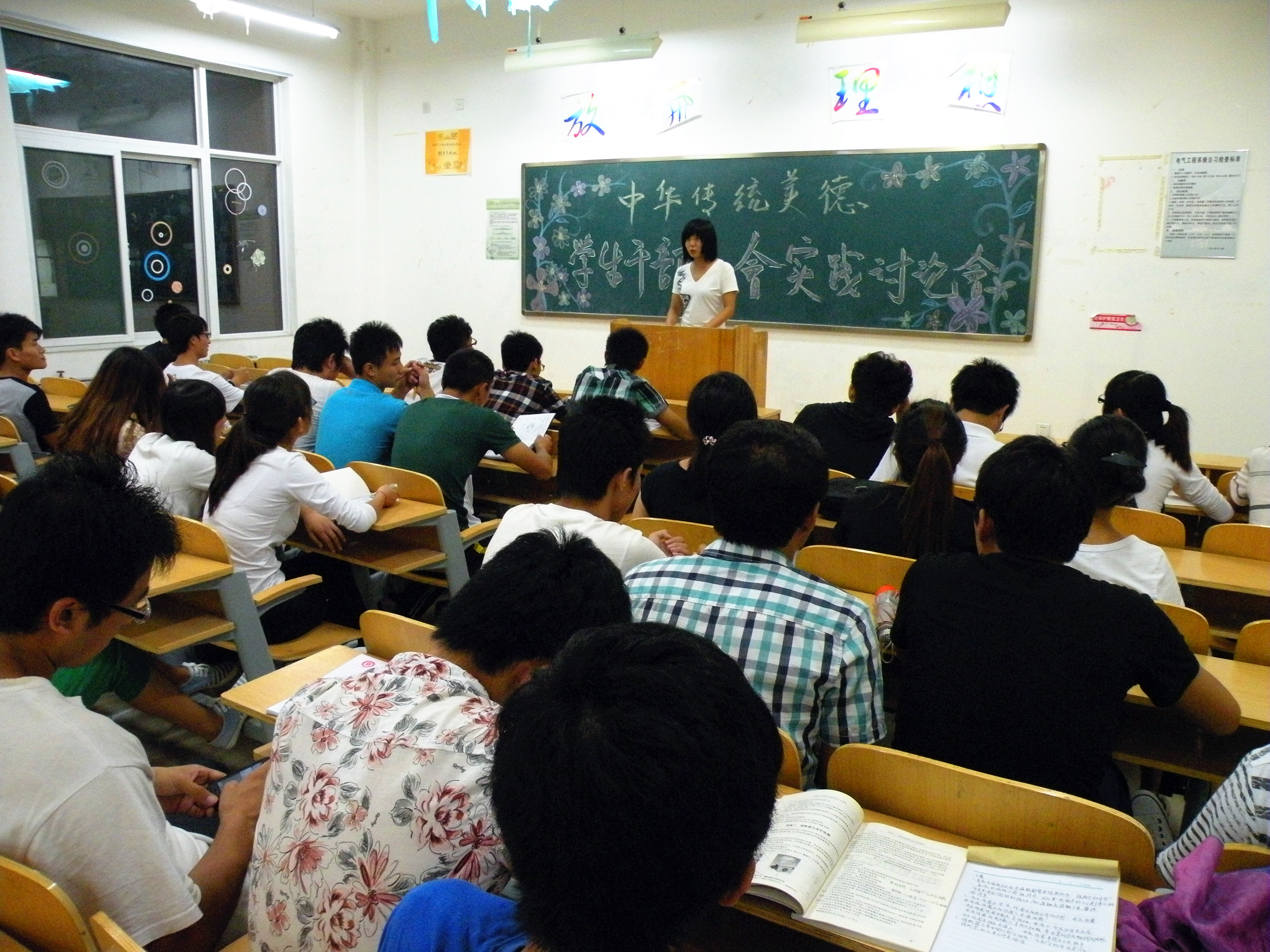2012年暑假期间,电气工程系美德宣传实践小分队来到学院德育导师、新中国成立以来百名感动中国人物之一、全国优秀共产党员、全国道德模范林秀贞家乡,走进林秀贞爱心小院,在那里学习林妈妈美德事迹,感受大爱无疆。活动结束后,同学们带着心得与感悟回到了自己的家乡,汇报美德学习成果,践行弘扬中华美德。 9月5日晚,由电气工程系团总支组织的“实践归来话收获”主题活动再次将大家聚到了一起。讨论会上,参与暑期社会实践活动的学生代表结合“中华美德进万家”走进全国道德模范林秀贞爱心小院暑期社会实践活动,与大家分享暑期社会实践的收获。回顾林秀贞爱心小院宣传实践活动,林妈妈身上显现出的尊老爱幼、扶危济困、乐善好施、助人为乐的感人事迹深深触动着每一个人的心灵。言语中表达的是满满的真诚,却又不失幽默。随后的班级讨论会中,同学们踊跃提问,与社会实践代表积极交流,讲述自己身边的感人事迹。 通过“实践归来话收获”主题活动,加深同学们对中华传统美德的理解,在获取专业知识和技能的同时,人格、品德同步提高。希望同学们在今后的学校生活、和社会活动中切实践行 “知能共进,德道同优” 的校训精神,努力成为一批真正的社会主义的合格建设者和接班人。