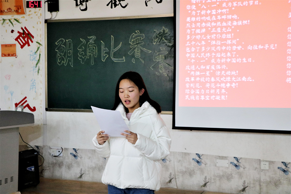通过朗诵爱国经典名篇,同学们接受了一次深刻的爱国主义教育,进一步增强爱国情怀,坚定理想信念。参赛选手们纷纷表示,要将朗诵比赛中展现出的良好风貌、言行修养延续到今后的学习、生活中去,把爱国情感化作实际行动,牢固树立新思想,时刻牢记新使命,刻苦锤炼新本领,奋发展现新作为,为实现中华民族伟大复兴的中国梦努力奋斗,为实现富强民主文明和谐美丽的社会主义现代化强国贡献青春力量。