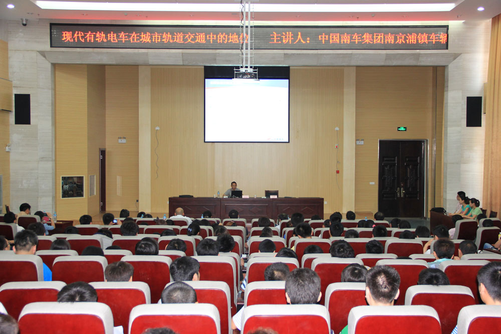6月7日,轨道交通学院特邀中国南车集团南京浦镇车辆有限公司副总工程师兼动车设计部部长黄文杰专家于图书馆报告厅隆重举行“现代有轨电车在城市交通中的地位”讲座。济南市轨道交通办公室刘主任、Beplay体育官方网站党委书记刘邦治以及Beplay体育官方网站轨道交通学院相关师生一同听取讲座,Beplay体育官方网站副院长祝瑞花出席并主持讲座。