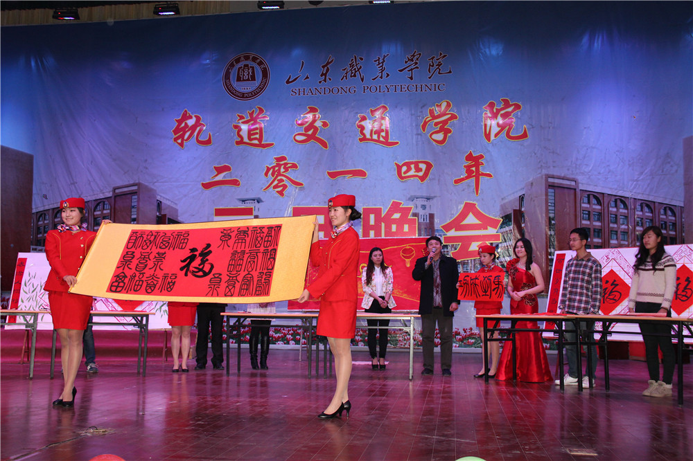 整场晚会现代时尚的前卫与传统文化的古典相互交融,火热与温情并举,形式多样,精彩纷呈。一场充满青春朝气的开场舞《波尔卡》正式拉开了晚会的帷幕,舞蹈演员们整齐响亮的踢踏、自信从容的微笑,无一不展示了我院学子积极向上、锐意进取的良好精神风貌。在随后的抽奖活动中周垂玉、齐涛以及我院各领导向同学们表达了最真挚的祝福和最美好的祝愿。由郭亭及书法协会成员带来的《书法》和教师学生代表的诗朗诵《岁月》节目的表演,展现了我国传统文化、尽显莘莘学子的内涵与气度;张迎伟老师一曲醇厚深沉的爱国歌曲《祖国我的最爱》博得满堂喝彩;《我最闪亮》、《像梦一样自由》、《完美新世界》等歌曲将同学们昂扬向上的精神和对新年的希冀淋漓展现;小品《和事佬》语言幽默、人物个性鲜明,结合学生身边小事,赢得台下师生阵阵欢笑和掌声;模特走秀和礼仪舞蹈《是你给我的爱》将我院学子的青春活力和乘务人员的专业自信完美呈现。最后,在《永远跟你走》歌伴舞的悠扬旋律中我院2014年元旦晚会圆满落幕。