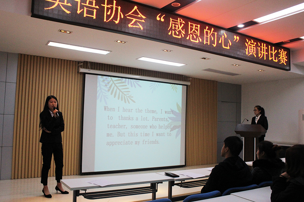 为提高同学们的英语口语表达水平,激发大家学英语的热情,11月28日,铁道运输与财经管理系举办了“感恩之心”英语演讲比赛。有着国外求学经历的辅导员老师张蕾、会计教研室老师王星月出席活动。