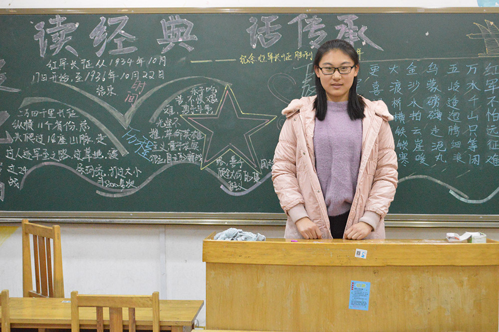 班会中,同学们纷纷推介自己阅读的有关工农红军长征的书籍资料,介绍一个个具体的事例和英雄人物的事迹,阐述长征的艰辛与红军战士所体现出的信念坚定、顽强不屈、坚韧不拔的革命精神内涵。有的班会还采取了诗歌朗诵、长征歌曲演唱、长征知识竞答等方式,让同学们加深了对长征的背景、艰难过程、长征精神、长征胜利的伟大意义的认识和理解。