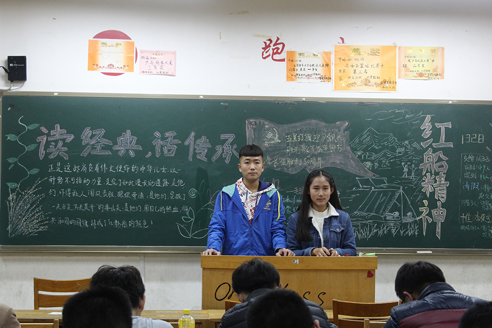 为弘扬长征精神,推动“书香校园”读书活动开展,11月20日,铁道运输与财经管理系各班召开了以“读经典,话传承,纪念工农红军长征胜利80周年”为主题的班会活动。