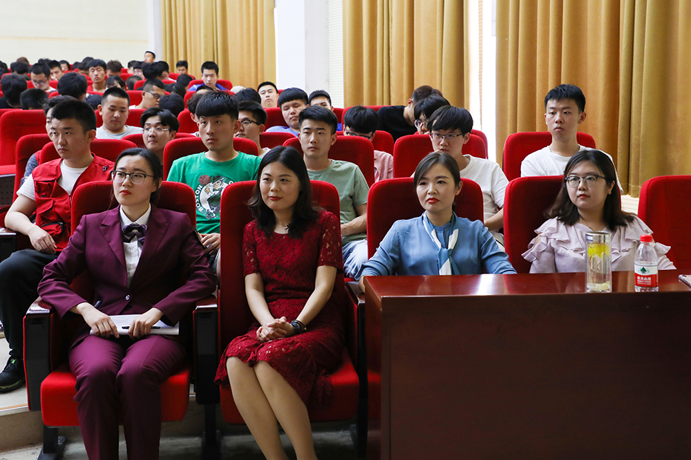 接着,任巍晓进行报告。她感慨怀念了美好幸福的大学生活,并对老师表达了感谢,同时表露出现在作为一名地铁人的初心,为她所在的集团公司感到骄傲和自豪。随后,她为同学们讲解了刚开始实习的困惑、外出他省地铁公司学习的艰苦、自己工作三年的经历。面对就业充满困惑的学弟学妹,她提出了不忘初心、脚踏实地、锤炼品格、勇于奉献四点建议,也对学弟学妹们发出了到济南地铁工作的邀请。