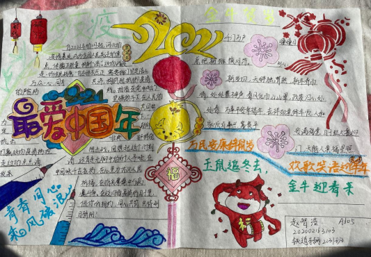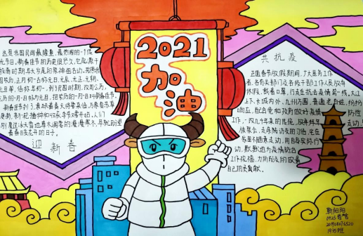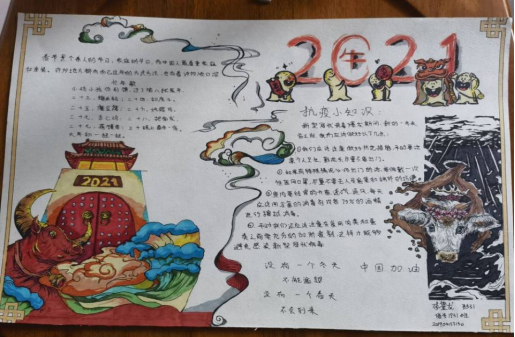 其中本次的特等奖获得者李鋆龙以手抄报的形式,表达了对牛年的向往,也展现了对抗击疫情的决心,完美的显示了本次活动的主题,同时还有不同奖项的获得者,他们用各种各玩各样的作品和不同的形式体现自己对国家的关心,对祖国抗击疫情的满满的信任,以及对2021年的美好的的期待。