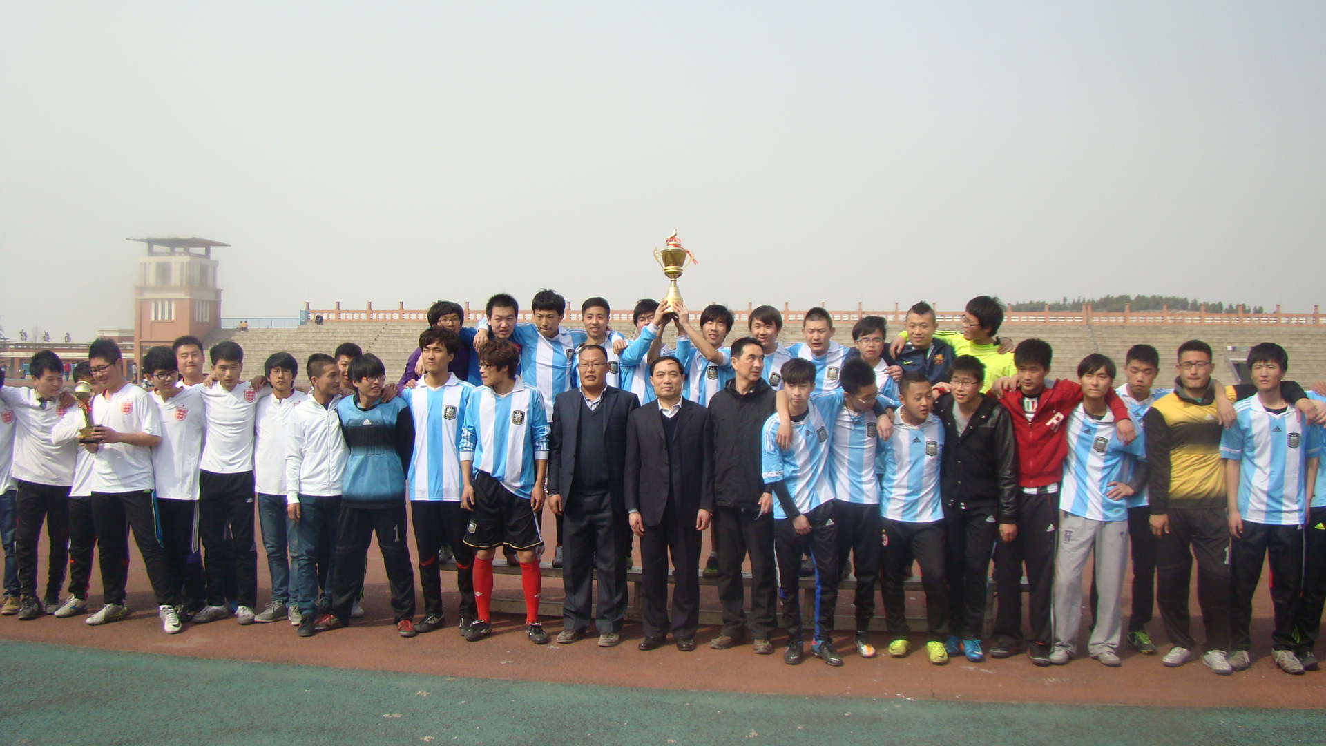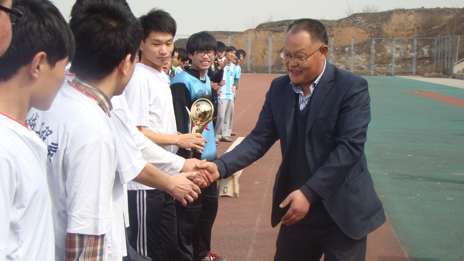 经过了多场精彩,激烈的比赛,轨道交通学院与土木系进行的激烈的冠军角逐中土木系以2比0的完胜的成绩夺得冠军。12点20分,在全校球迷们的热切盼望下,Beplay体育官方网站足球八系联赛决赛正式在校园绿茵操场拉开帷幕。轨道交通学院的足球队员们身着黑色条纹的球服,像是黑色的闪电飞梭在绿茵场上,飒爽的英姿在空气里荡漾;在蓝天下土木系代表队穿着蓝色队服像是灵巧的精灵,矫健的身姿在闪电中穿梭,发尖的汗珠洒落在绿草之上散开一朵朵晶莹。两队球员们在球场上箭步如飞的追逐着脚下的足球,那不怕受伤,奋勇拼搏,积极争先,永不认输的精神感染者在场的每一个人,现场的球迷啦啦队们更是热血沸腾,加油呐喊声随着赛点一浪高过一浪。在上半场中轨道交通学院由于防守不力,使得土木系代表队夺得一分,土木系代表队顿时士气高涨,轨道学院代表队们也并没有由此气馁,在下半场中积极反击,但由于土木系代表队能力略胜一筹,最终以2比0的成绩夺得冠军,轨道交通学院代表队亚军,机械系代表队季军,并由校领导董书记亲自颁发奖杯。Beplay体育官方网站足球八系联赛终在球员和球迷们的共同见证下圆满落下帷幕。
